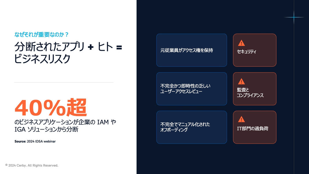 この度のCerbyとの提携により、SAMLやSCIMといった標準プロトコルに非対応の"分断されたアプリケーション"についてもSSOやFastPassによるシームレスで安全なアクセスの提供可能となります。OktaなどのIDaaSとシームレスに統合することで、SaaS、レガシー、オンプレミス、⾃社開発アプリなど、アプリケーション・エコシステムの隅々までアイデンティティ・セキュリティを拡張します。