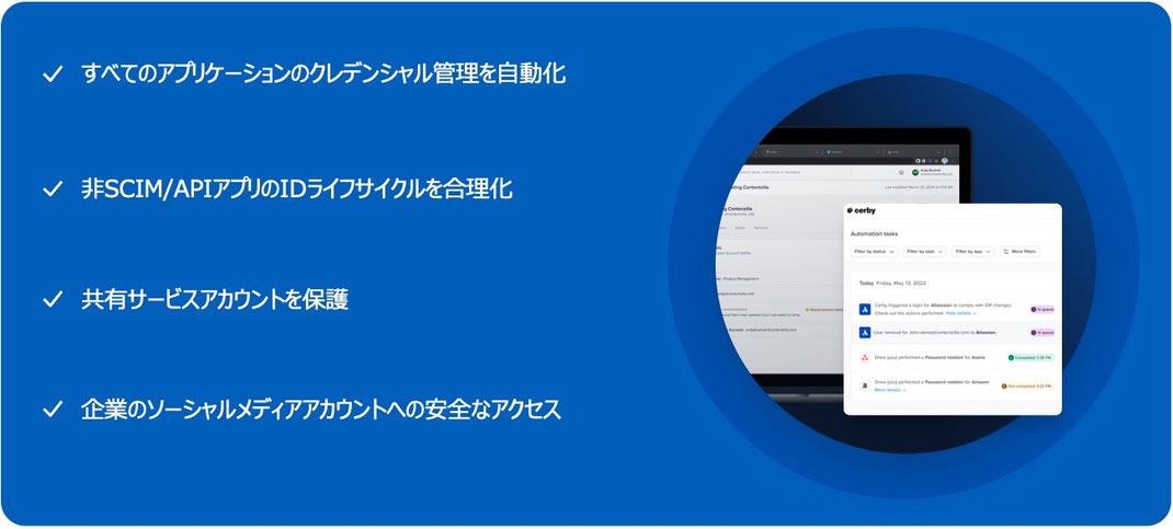 私たちCelioの卓越したID管理に関する知見・技術力とCerbyの先進機能を組み合わせることで、お客様が利用されるアプリケーションの一元的な監視と、セキュリティと管理性の強化が実現可能となります。